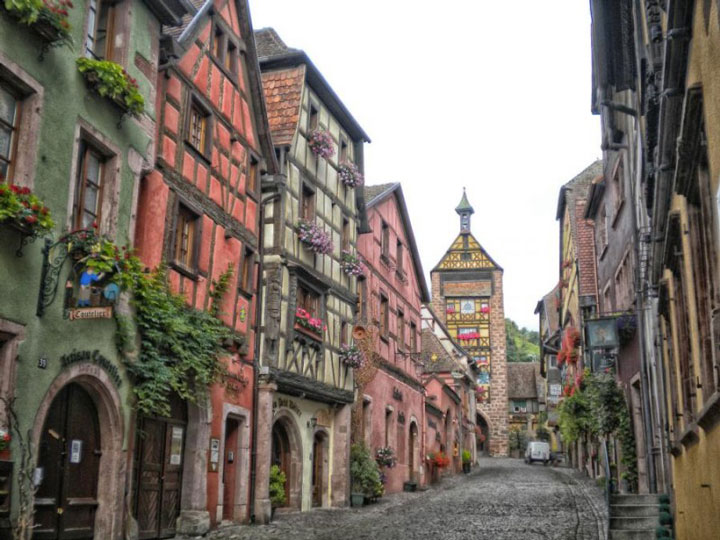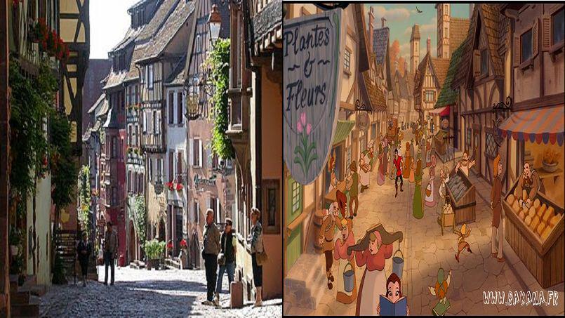 Belle serait “alsacienne” ! En tout cas, il ne fait nulle doute que les dessinateurs des multiples aventures de la princesse inspirée de “La Belle et la Bête” ont imaginé son village après avoir visité Riquewihr, Ribeauvillé ou Colmar. De nombreux dessins, tirés du film en attestent…