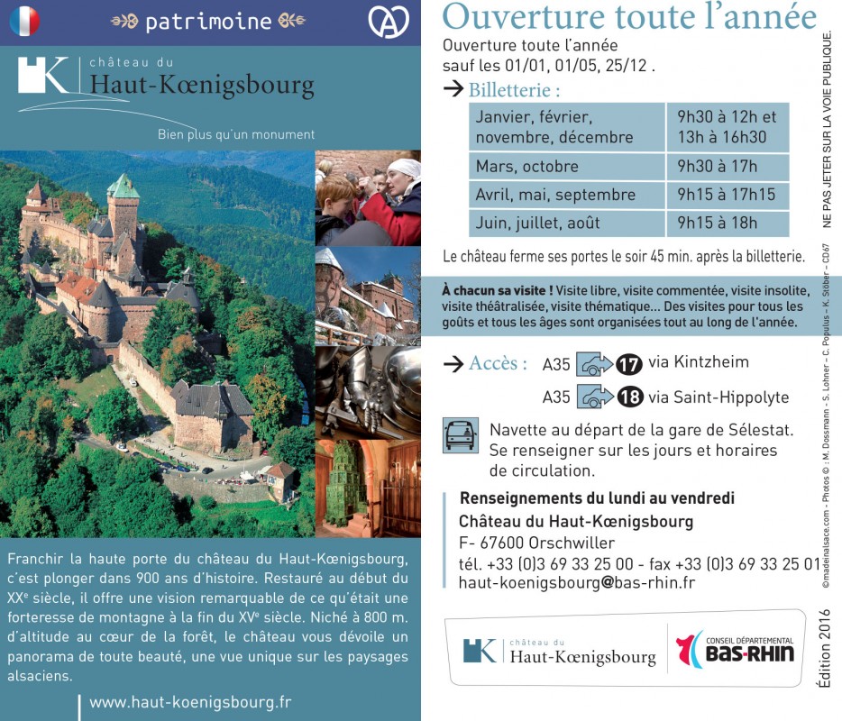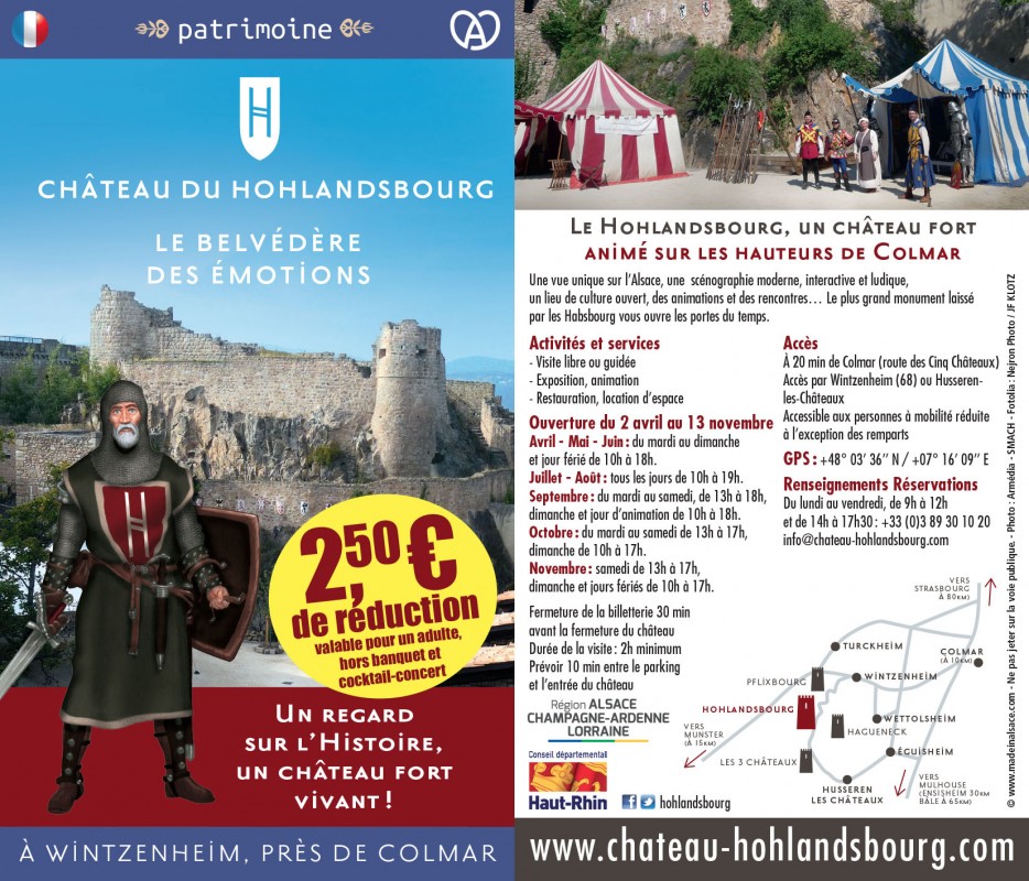 Des Confitures du Climont au Caves des Hospices Civiles, du Château du Hohlandsbourg à celui du Haut Koenigsbourg, Du Village Hansi au Tissage Gander, des Secrets du Chocolat à ceux des parcs animaliers d’Alsace …