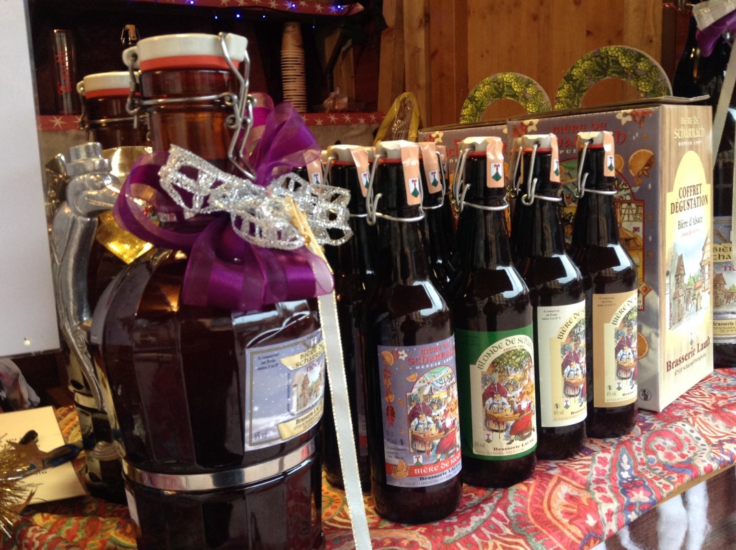 Sur le marché, on trinquera à coup de vin chaud, mais aussi de Bière ( chaude) de Scharrach ( la froide est pas mal non plus).