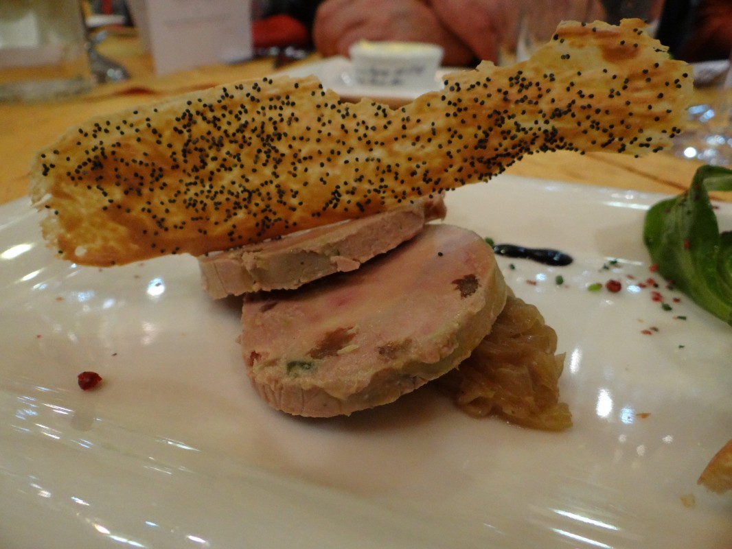 Nougat de foie gras d’oie aux fruits secs Compotée d’oignon au vinaigre de cidre