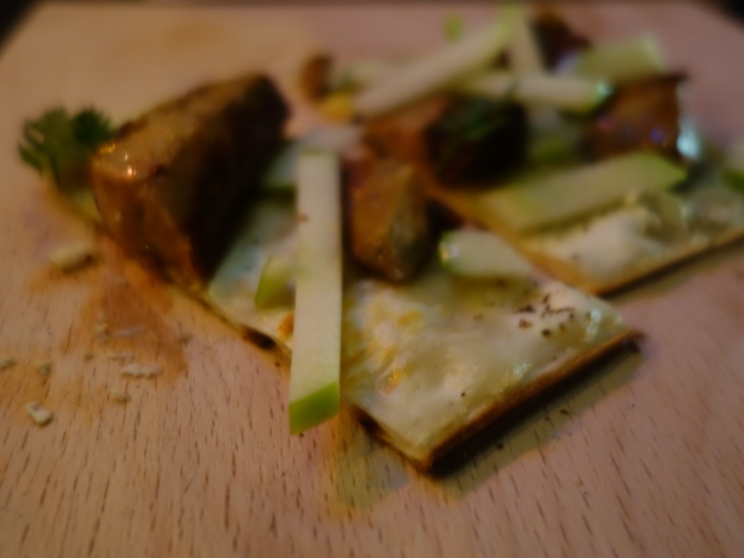 Hommage au Crocodile, son restaurant récemment étoilé, il a su revisiter 4 recettes mythiques de l’établissement strasbourgeois pour donner naissance à 4 petites flammées gastronomiques.