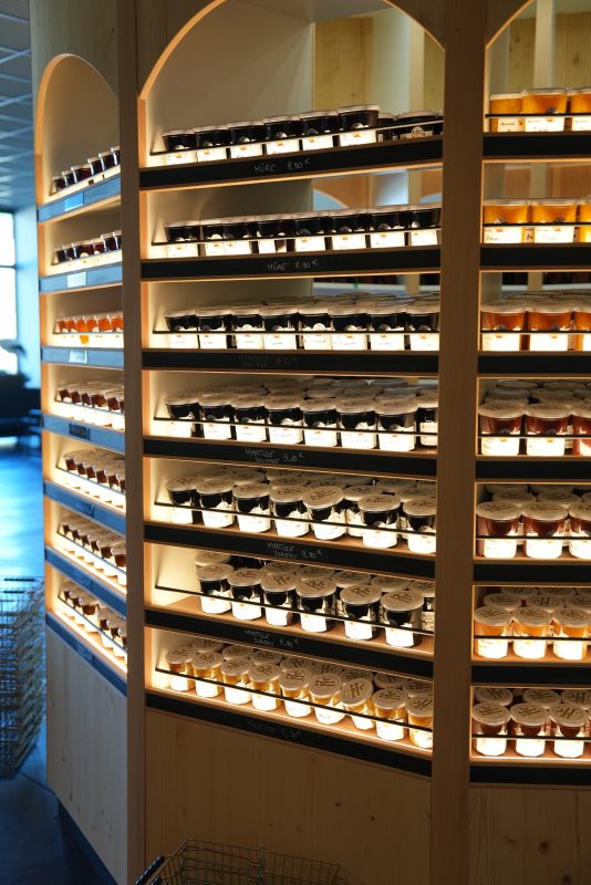 1121 m² de plain-pied, 3 millions d’euros d’investissement, un atelier de fabrication de 200 m², une boutique et un espace de dégustation de 160 m², un atelier de le seul musée de la confiture en France de 90 m² retraçant l’histoire de la confiture et rassemblant des objets anciens au fil d’un parcours ludique, 11 salariés et bien des parfums mis en pots de 350 grammes …