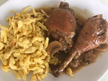 Servez bien chaud avec comme accompagnement des spaetzles « maison » et bon Riesling frais.