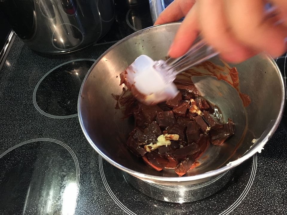 Faire fondre doucement le chocolat et le beurre au bain marie
