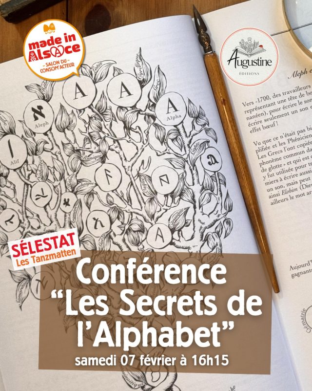 - Une conférence captivante sur les origines de l’alphabet proposée par Augustine Editions, référence suivie par plus de 250 000 personnes sur les réseaux sociaux.