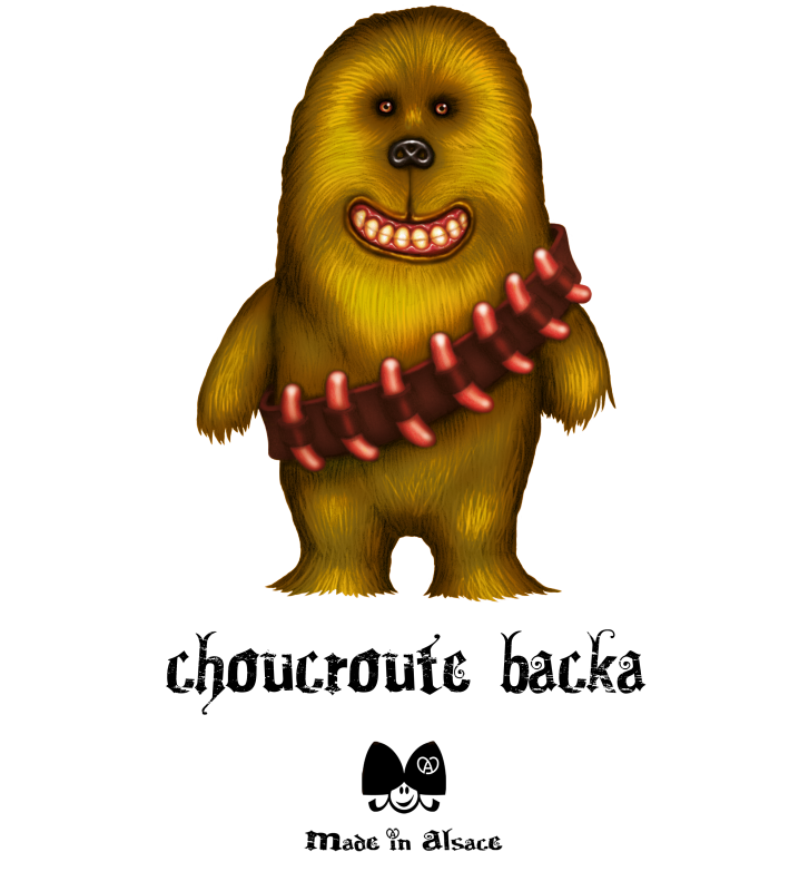 Un Knack Vador déclamant naturellement « Je suis ton paire … de Knacks », un Maître Yodu sorti d’une grotte vosgienne, un Choucroute Backa à croquer, sans oublier les bretschdel trooper …
