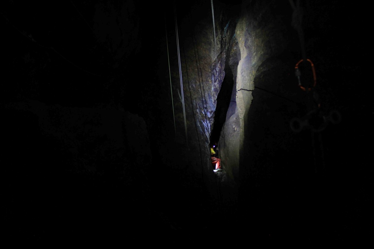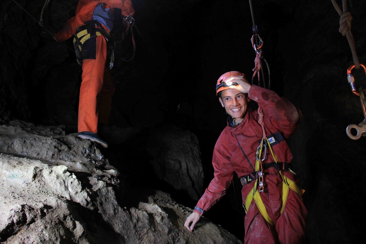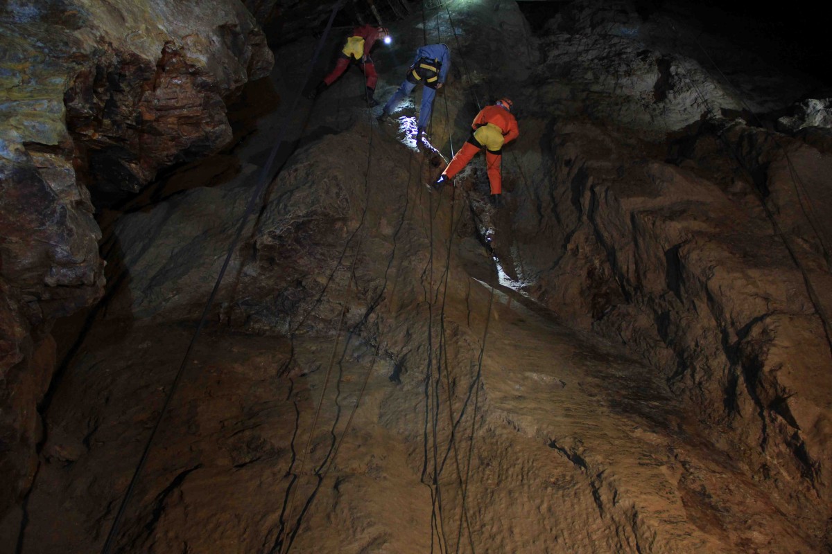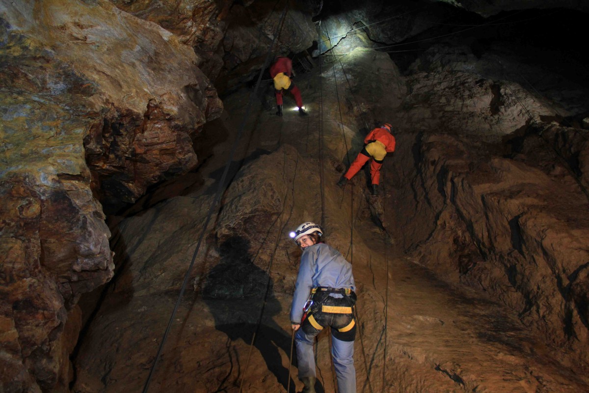 La visite « L’intégrale »consiste à remonter les 3 puits du fond en utilisant les techniques « spéléo » et à redescendre la colonne St Jean sur corde. Pique-nique inclus. Public sportif averti ayant des notions de rappel