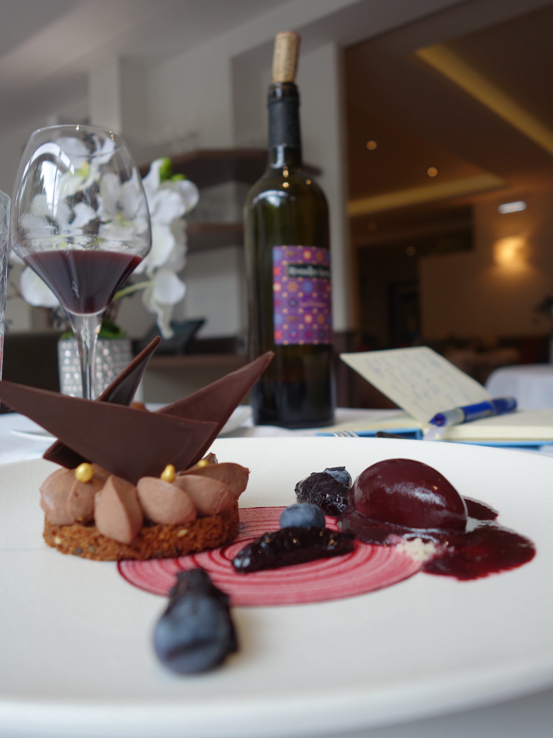 Karen Heinfling Cheffe Pâtissière à la Verte Vallée, clôt l’excellent moment. Son Sablé Breton, Myrtilles et Sorbet, chocolat 70 % de chez Cluizel (Origine Brésil) est un délice.